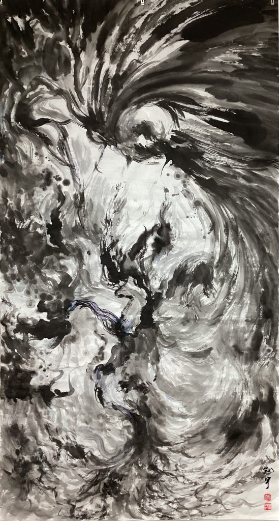 Thus, “Cosmic Imagery” signifies the full maturity and independence of the “Fantasy-Color Freehand” language. The whirling linear structures, colliding color fields, and deep spatial portals in his paintings are rooted in the Eastern aesthetic of “Spirit Resonance” (Qi Yun), yet they speak a universal language about cosmic origins, the flow of time, and elemental energy. He achieves a dual transcendence: formally, transforming ink from a tool for “depicting objects” into an autonomous syntax for “constructing realms”; conceptually, elevating personal meditation into a metaphysical inquiry with shared human resonance.