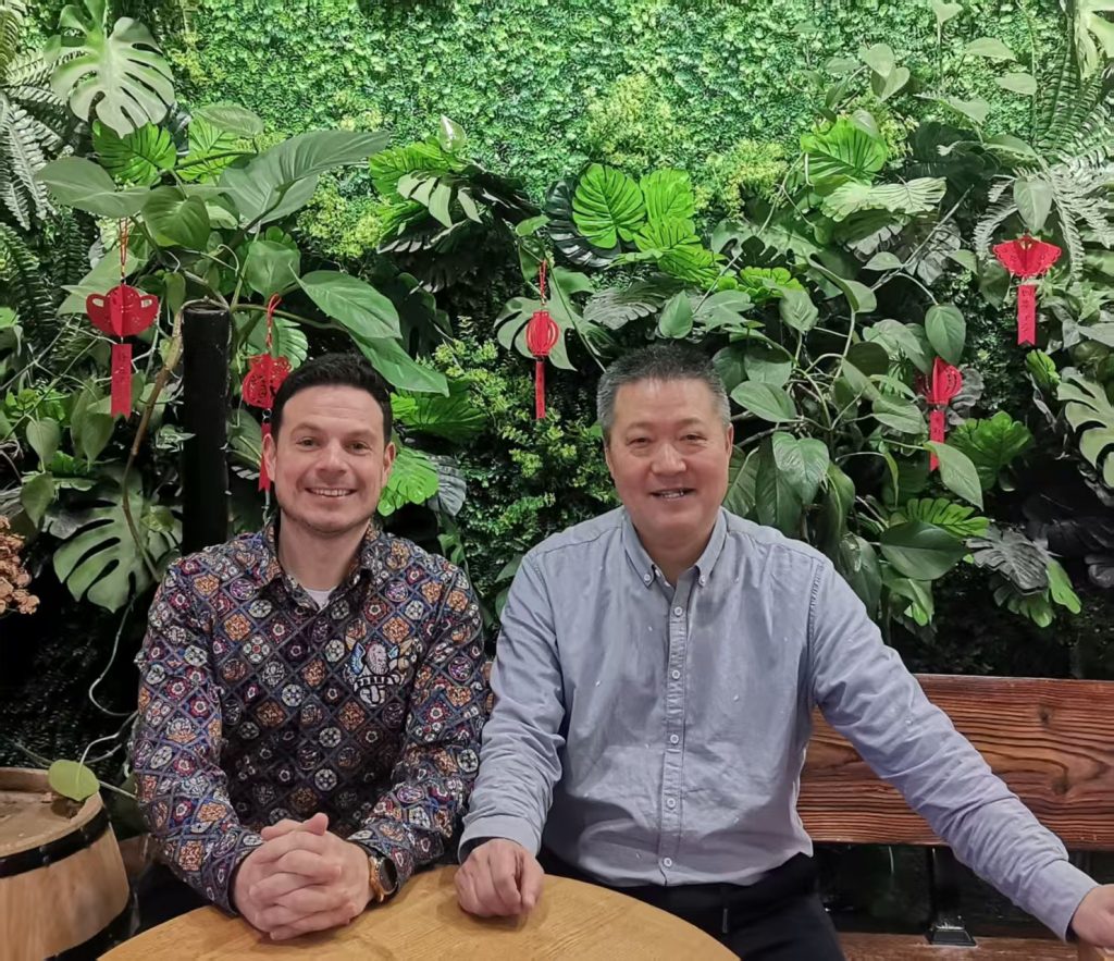 On February 4, 2026, an in-depth and extensive exchange on artistic creation was held with Mr. Roro from a French artist agency at the studio of calligrapher and painter Mr. Lu Ligeng in Shenyang Longemont Tea City.
