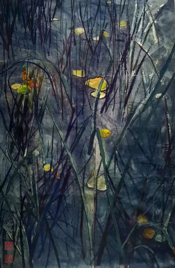 “十六岁,鲁迅美院郑波教授的课上,满墙习作中,他的雨伞点中了我的画——‘就这张领会了我的意思’。那一刻我明白,天赋不是技巧,是瞬间贯通。二十岁,第一张用色冲破墨规的‘幻彩’原作诞生,它青涩、猛烈,是我与古人对话的第一声自己的回音。这条路,我已走了四十五年,从少年得志的线性素描,到中年构建的非线性宇宙心象。每一幅作品,都是这漫长修行路上的一座驿站。”